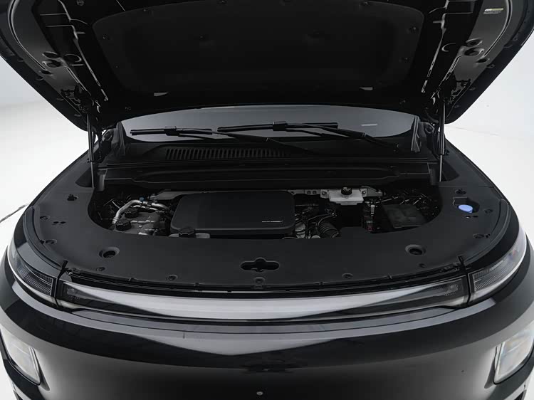下包围部分采用了类似三段式的布局,两侧配备有小巧的导流槽,中间部分则是尺寸比较大的矩形进气口,内部使用了网格状结构进行装饰,点缀出了车头的层次感。值得一提的是,纯电动版提供有前备箱,所以前舱盖和前脸采用了一体式设计,和增程版在视觉效果方面是有明显差异的。