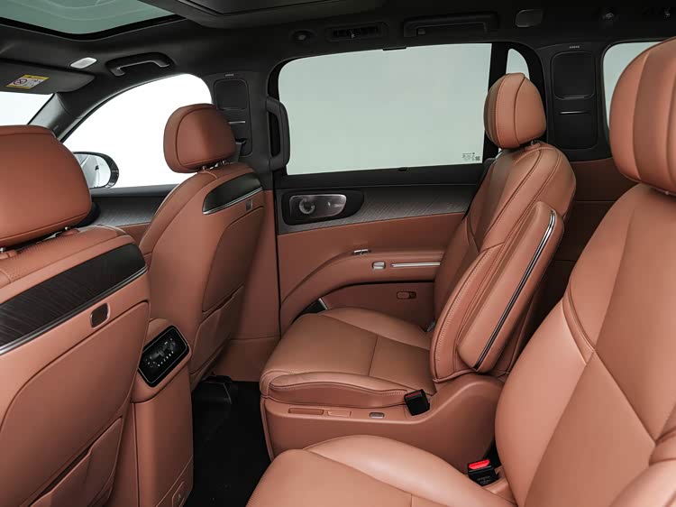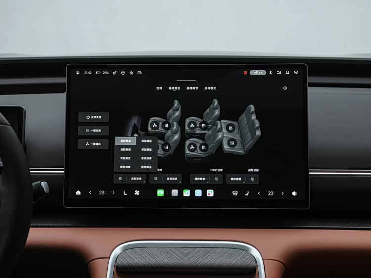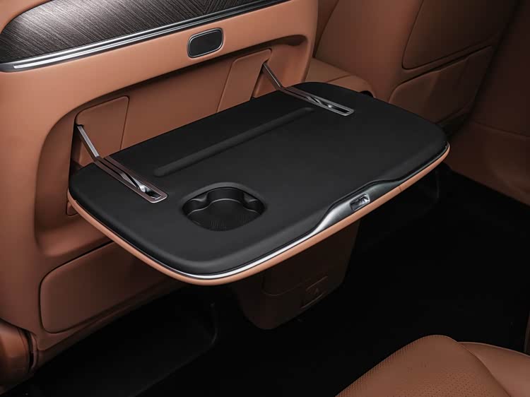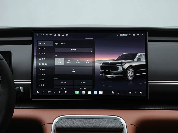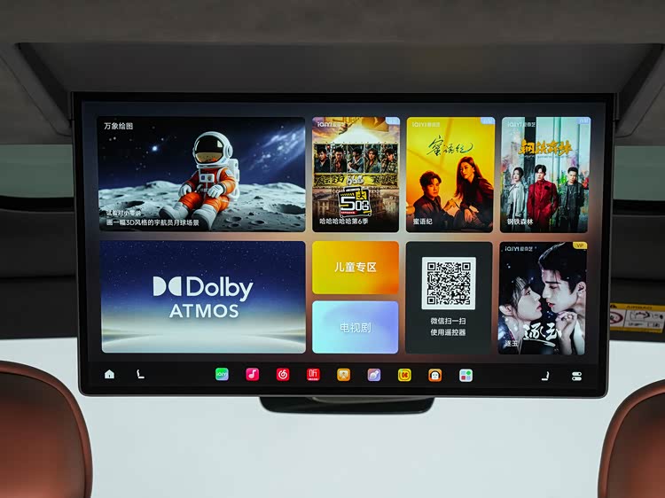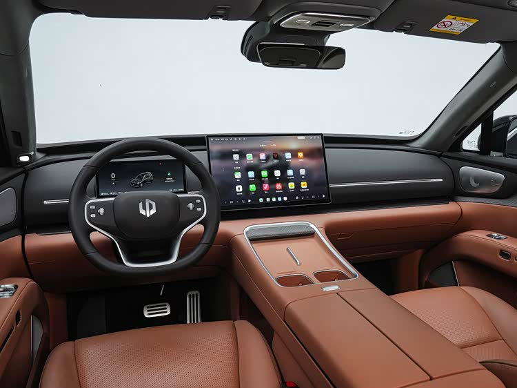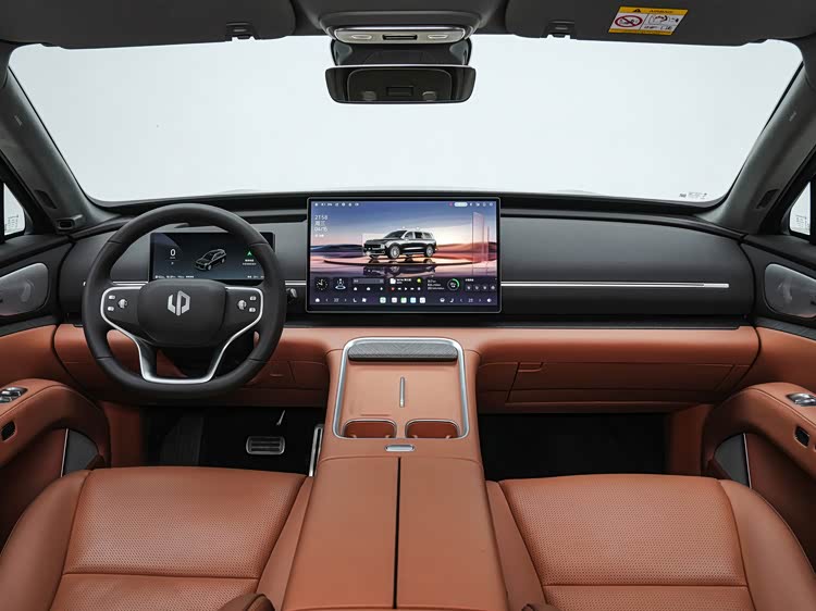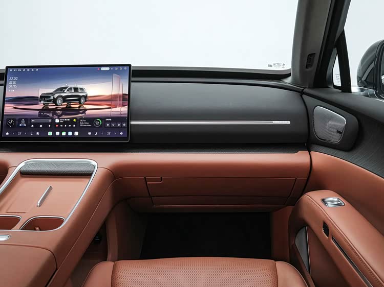 内饰采用双层环绕式座舱搭配超椭圆数字曲面设计,提供云雾灰、丹雅棕、霁雨灰三种配色,整体质感不俗。车内大面积使用软包材质,采用茶多酚环保工艺,搭配天鹅绒顶棚、头层小牛皮包覆、Nappa真皮方向盘和木质纹理饰板,每一处细节都能感受到用心。除此之外,车内还有3种香氛系统、柔光漫射壁灯和1600万色漫反射氛围灯,支持多场景灯光联动,营造出舒适的驾乘氛围。前排配备60英寸高亮全天候AR-HUD、10.25英寸液晶仪表和17.3英寸中控屏,搭载端侧大模型座舱,具备AI交互功能,中控屏画质清晰,支持3D车模成像和全域车道级SR导航,日常操作便捷且直观。值得一提的是,该车配备的“森野氧舱”车载制氧系统,最大制氧量可达8L/min,同时具备空气净化功能,能为驾乘人员提供更健康的车内环境。
