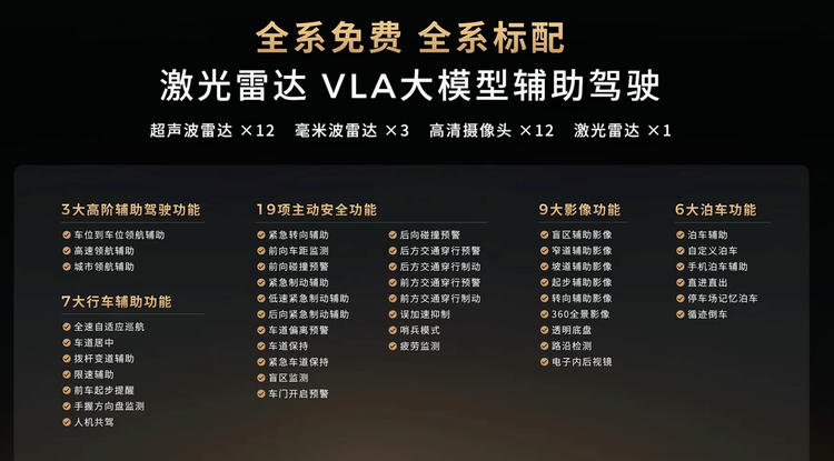 智能化方面,零跑D19搭载高通骁龙双8797至尊芯片,算力达到1280TOPS,配合包括1颗激光雷达在内的28个智能感知硬件,支持VLA辅助驾驶,涵盖车位到车位领航辅助、高速领航辅助和城市领航辅助等功能。主动安全方面,该车具备4-150km/h时速工作区间的主动AEB制动系统,以及80-130km/h时速工作区间的主动紧急避让AES系统,能有效降低出行风险。被动安全上,采用笼式车身结构、回形五重钢A柱,高强度钢占比超75%,搭配十层电池防护系统、120km/h双轮爆胎稳定控制功能和10安全气囊,全方位守护驾乘人员安全。