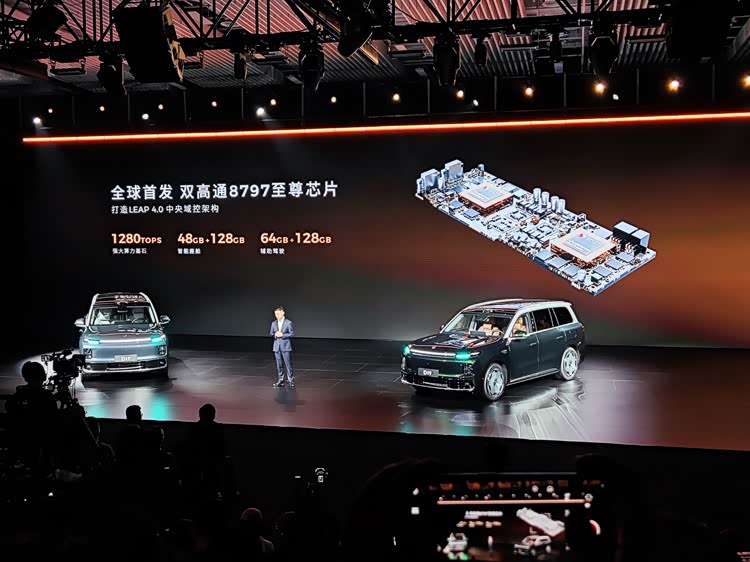 零跑D19搭载双高通8797芯片,总算力1280TOPS,比目前主流的8295芯片高出不止一个量级,甚至比很多品牌宣传的「双Orin」方案还要强。
