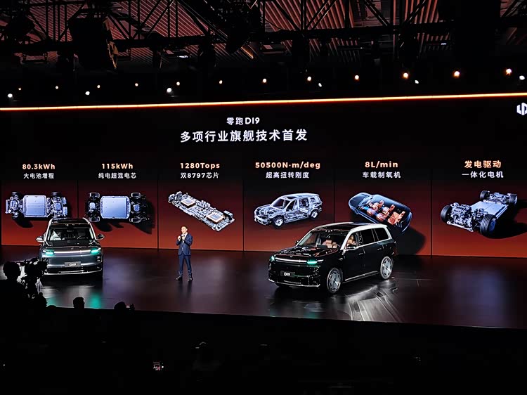 证明这一点的关键是,零跑D19首发了多项行业旗舰技术,比如80.3kWh的增程大电池、115kWh纯电超混电芯、算力高达1280TOPS的双8797芯片、50500N・m/deg的超高扭转刚度等等。