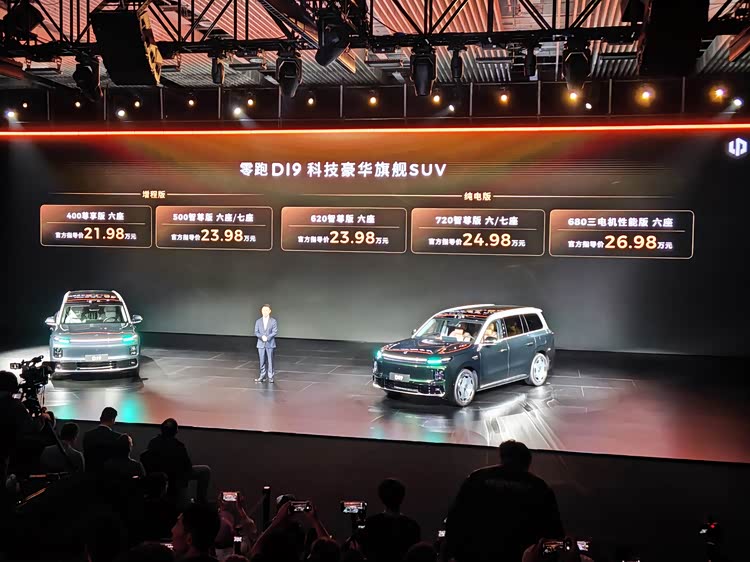 4月16日晚, 零跑D19(参数|询价)迎来正式上市,雷科技/电车通受邀来到现场参与报道。作为品牌十年技术集大成之作、全新D平台首款旗舰,零跑D19是品牌迄今为止定位最高、定价最贵的车型,新车推出增程版和纯电版两种动力共五个版本,其中增程版的售价区间为21.98-23.98万元;纯电版为23.98-26.98万元。