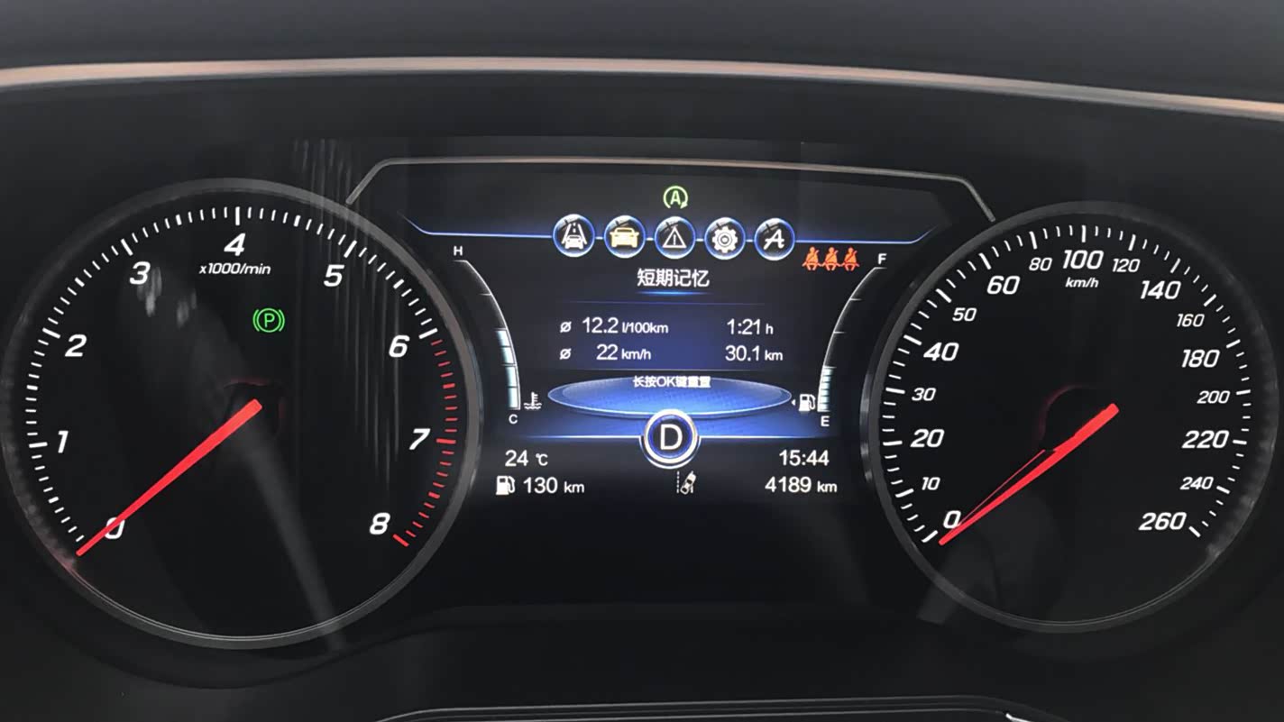 方向盘上按键较多,排布逻辑性不强,需要时间适应。液晶仪表的彩色显示屏上,行车信息的显示也略显凌乱。比如说后排三个座位在没有坐人的情况下依然会显示安全带没有系的提醒,显得很多余。