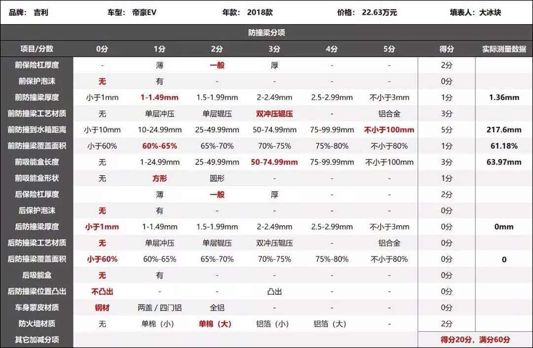 吉利帝豪EV防撞梁评分