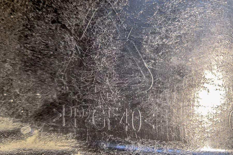 因为这辆车的后防撞梁既不是钢,也不是铝合金,更不是玻璃钢,而是彻彻底底的“聚丙烯”,也就是我们常说的“工程塑料”!因为我们在防撞梁上发现了“PP GF40”的字样。这应该是我们拆过70多款车以来,第一次见到用塑料做防撞梁的车!真是开眼了!至于“PP GF40”到底是个什么塑料?我们一会展开聊。