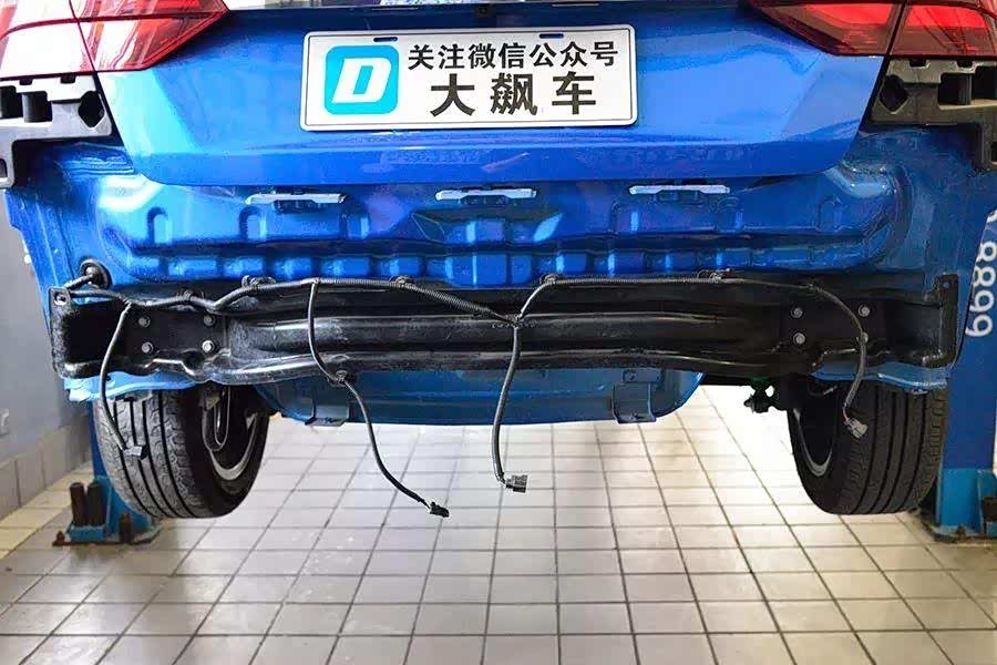 至于后防撞梁是否凸出其实已经不重要,不仅不凸出,而且塑料的防撞梁根本不能算是“防撞梁”!和没有是一样的,对于汽车来讲没有任何的保护能力。所以我们把帝豪EV450这款车算成没有后防撞梁。