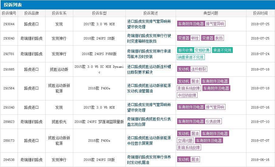 如此频繁的召回,还只是一些明面上的问题。据车质网投诉显示,路虎旗下的多款产品依然存在着各种各样的问题,小至玻璃无法升降、门锁故障,大至核心部件漏油甚至无法正常行驶。显然在生活中,像上文陈先生、纪先生为了“路虎之名”而饱受质量问题困扰的的消费者其实不在少数,但如此糟心的用车体验,如果再给他们一次选择的机会,他们还会为路虎品牌而买单吗?值得思考。
