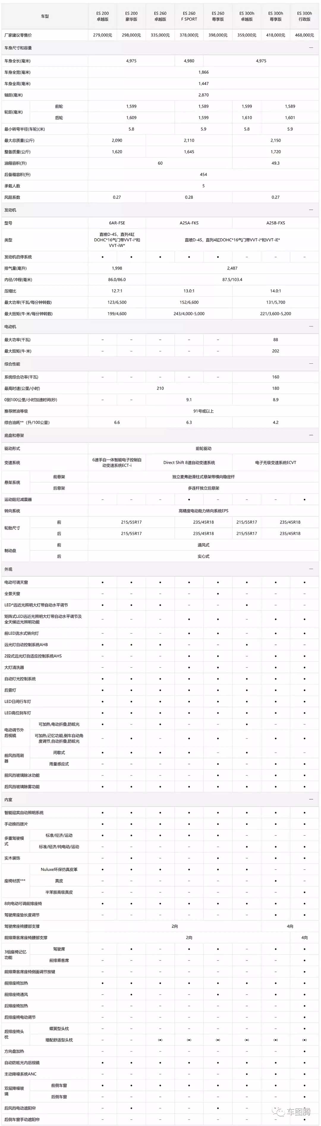全新ES共推出8款车型,匹配3种动力系统,指导价为27.9万-46.8万元。雷克萨斯ES再次有了质的变化。
