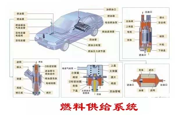 汽油机燃料供给系的功用是根据发动机的要求,配制出一定数量和浓度的混合气,供入气缸,并将燃烧后的废气从气缸内排出到大气中去。汽油机和柴油机的燃油供给系统有很多的差别,相对来说,柴油机的更复杂,系统压力也更高。它主要由燃油泵、燃油箱、油管、喷油器等组成。