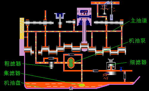 润滑系的功用是向作相对运动的零件表面输送定量的清洁润滑油,以实现液体摩擦,减小摩擦阻力,减轻机件的磨损。并对零件表面进行清洗和冷却。润滑系通常由润滑油道、机油泵、机油滤清器和一些阀门等组成。