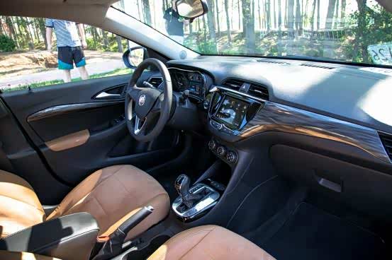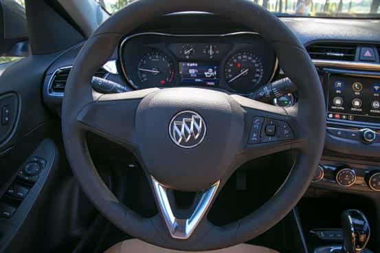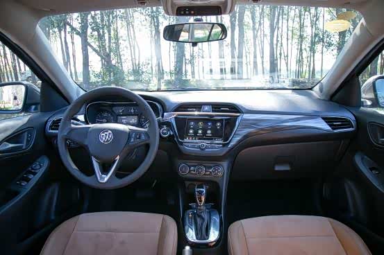 打开车门,全新凯越的内饰和外观在设计风格上高度统一,新车内饰时尚灵动,中控台稍稍向主驾驶侧倾斜,木纹饰板给车内带来一种居家的感觉,整体简约富有都市感。