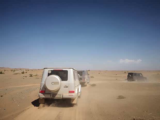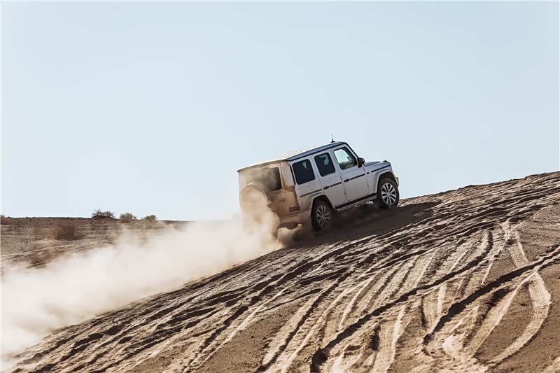 至此,鬼哥不得不提一下奔驰全新G级越野车的低速越野档(LOW RANGE)和三把锁,在敦煌一天近6个小时的疯狂穿越及挑战后,鬼哥亲身体验了这两个越野配置的重要性。看上去只有20多度的斜坡,似乎一般的越野车都可以轻松通过,但如果坚硬的路面改为尘土般的细沙,就无从谈及轻松了。奔驰全新G级越野车在鬼哥的差异化试驾后,让鬼哥深刻体验了这两个越野配置的重要性,开启即可轻松通过,一旦关闭真的会陷车,具体有几次丢人的经历,就一笔带过吧!