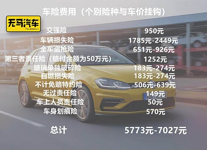 高尔夫的指导价为12.19-18.29万(不算GTI车型),保险的价格因车价的不同而不同。入门车型新车的保险为5773元,顶配车型新车的保险为7027元。当然如果没有出险的话,后面的保险是会逐年下降的,我们就姑且先算每年的保险是5773元。