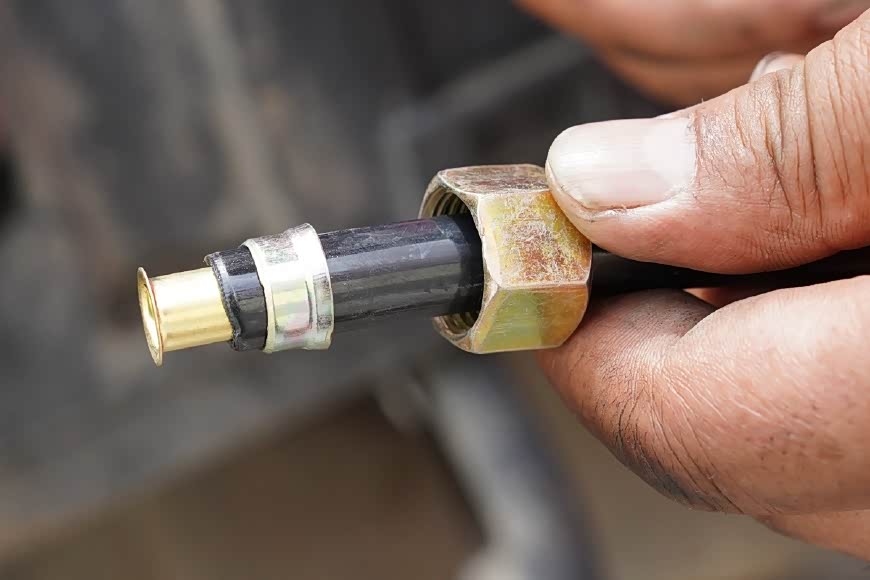 另外,胡哥所使用的亚达管(俗称尼龙管)的接头三件套,也和常见的产品不一样。据他介绍,这种接头套件不需要像之前的产品那样用夹具和锤子进行铆接,直接手持管路,将内芯抵在硬质物体上轻轻一推,就可轻松装入,安装非常方便。并且密封性和可靠性都非常好,几乎不会出现漏气和脱开的现象。