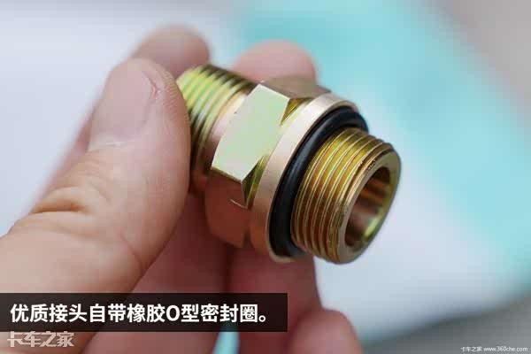 组合起来非常简单,套入金属材质的密封环,再装入O型橡胶密封圈就可以了。胡哥介绍说,这种接头装到ABS阀体上以后,不容易松动,密封性能非常好,可以彻底杜绝漏气现象的发生。