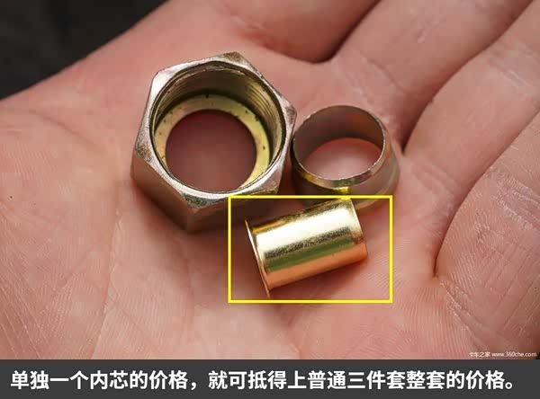 要说缺点,可能唯一就是价格太贵了,仅仅是三件套里的一个内芯的价格,就能抵得上传统三件套一整套的价格。所以,为了节省成本,很少有修理厂愿意使用这种优质的管路接头。