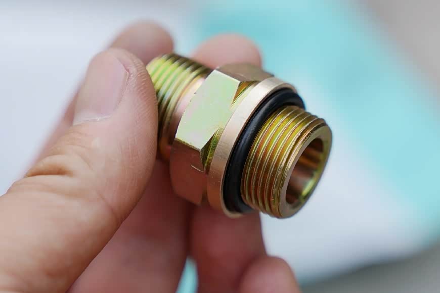 而胡哥所使用的接头,带有密封圈,不用缠绕生料带就可起到密封作用。可以简单对比一下,左侧是缠绕了大量生料带的传统接头,而右侧是自带密封圈的新接头。