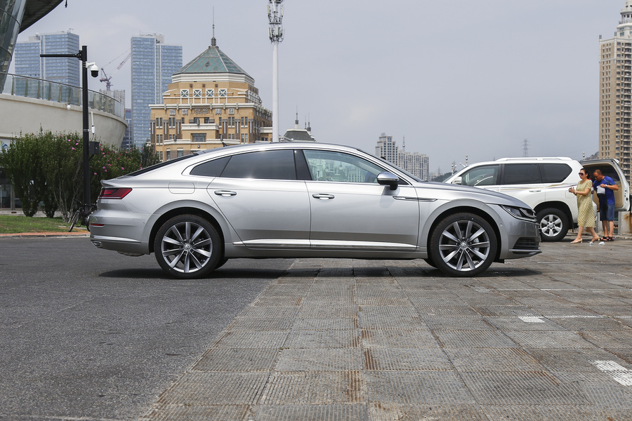 在外观这一点上,Arteon绝对是十分突出的。设计风格上沿用了海外版Arteon的造型,绝对是今年来改变最成功的一类,搭配上层积岩式的前脸,增强了层次感的同时,也极具辨识度,绝对是让人印象深刻。前大灯采用了LED光源,并带有随动转向功能,富有新意的设计和中网格栅相得益彰,给人眼前一亮的惊喜感。