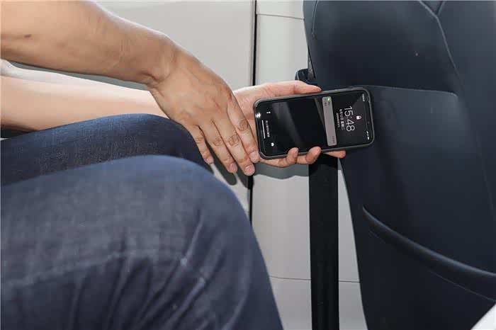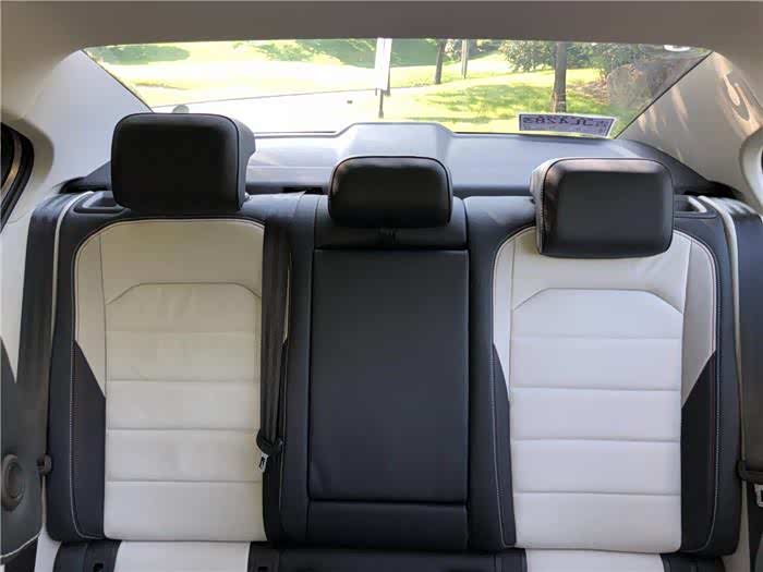 例如我们调整好驾驶姿势后(174cm/72kg),前排头部空间留足1拳时,座椅依然有下调空间。此时后排腿部空间达到一部苹果iPhoneX+4指,后排乘客可以轻松翘起二郎腿;同时后排正常依靠座椅后,头部至少同样有一拳空间,如果慵懒依靠,头部空间只会更大。