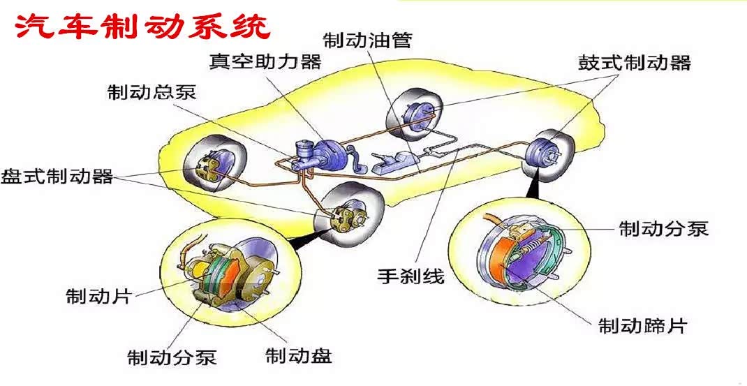 汽车制动系统是指汽车上能够产生制动力的一系列专门装置。它的主要功用是:根据需要使汽车减速或在最短的距离内停车,以保证行车安全,并使司机敢于发挥出汽车的高速行驶能力,从而提高汽车运输的生产率;又能使汽车可靠的停放在坡道上。