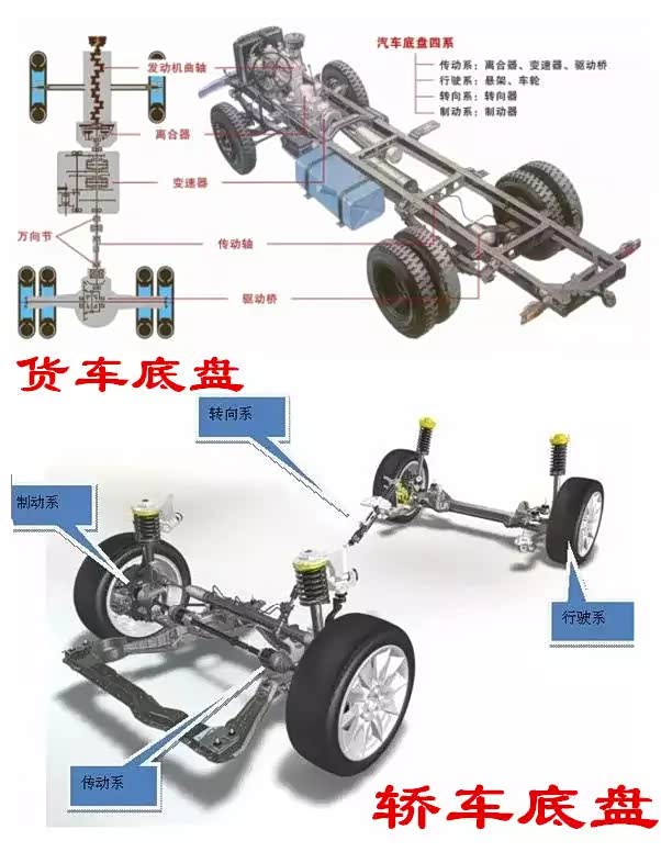 看到这里你应该明白了,汽车的底盘是指支持汽车行驶、控制汽车行驶状态的一系列零部件的总称。在我们最常见的轿车上,除了发动机、变速箱、车身、电气系统之外的所有零部件,都可以归属到底盘的类别。需要注意的是大家要把底盘与汽车底部的那一大块底板区分开来,它是汽车车身的一部分,绝不是底盘。