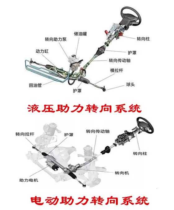 现在汽车的转向系统大多都有助力装置,一般有液压助力和电动助力两种。由于电动助力的优势更明显,所以更多的车型上配置的都是电动助力,只有一少部分有特殊需求的车型配置液压助力。