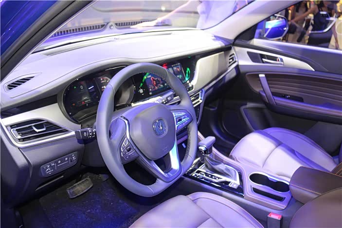 长安CS35 PLUS的内饰设计风格沿用了睿骋CC的思路,整体看起来简约的同时,在质感的营造上也非常用心,中控大尺寸屏幕采用内嵌式,预计将具备互联功能,下方空调控制区域采用触控面板,同时新车仪表盘采用机械仪表和液晶显示屏的组合式设计。