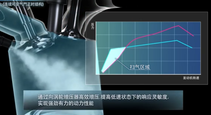 得益于使用此前本田在量产发动机上极少使用的进排气双侧VTEC系统,为提高发动机的燃油效率,进排气阀门的重叠量增加,降低了泵气损失。在发动机转速低、负荷大的情况下,通过增加进排气阀门的重叠量,扫气效果得以提高,从而优化了涡轮增压器的响应性。在维持高转速的情况下,则减少了进排气阀门重叠量,增加了进气量,从而提高功率输出,维持畅快平顺的加速。