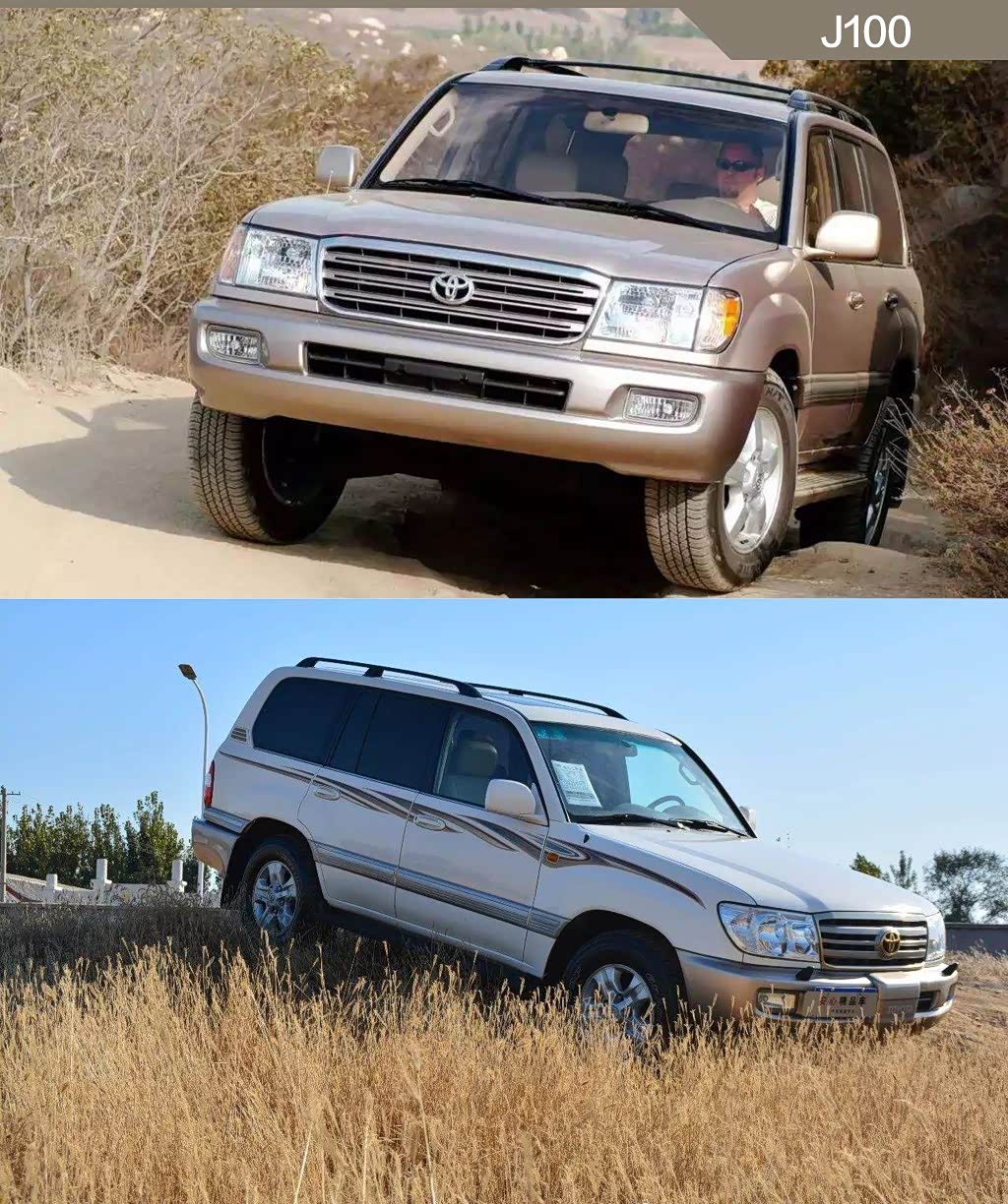 来到结尾,我们看看J100、J105(1998-2007),也就是上一代的兰德酷路泽。两个版本的区别在于,J100前桥采用了双叉臂式独立悬挂,得到了更好的道路驾驶舒适性,这一改动刚刚换代奔驰G级一样;而J105继续保持非独立悬挂,能满足重度越野需求。J100也是首次国产化的兰德酷路泽,当时的名字还是霸气的直译:“陆地巡洋舰”。