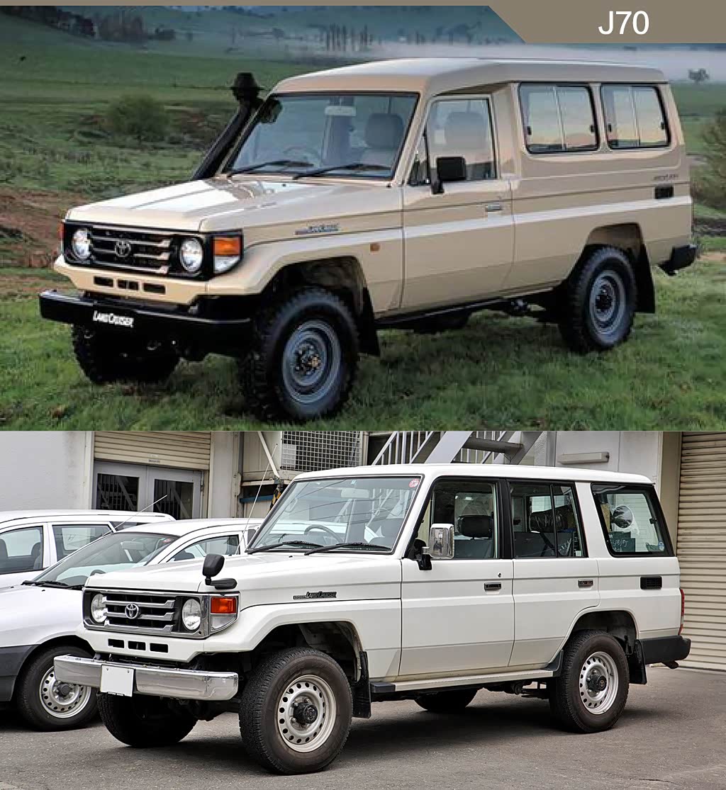一个新的开端:兰德酷路泽J70(1984-至今),它并不是前篇介绍的J60的换代车型,而是丰田对于之前J40实用越野车属性的一个延续。这台车经历了多次改款,有着长轴、短轴、货车等多种版本车型,其中短轴的J70是后来 Land Cruiser(参数|询价) Prado普拉多的前身,形成了独立的分支。时至今日,兰德酷路泽J70依然在量产。