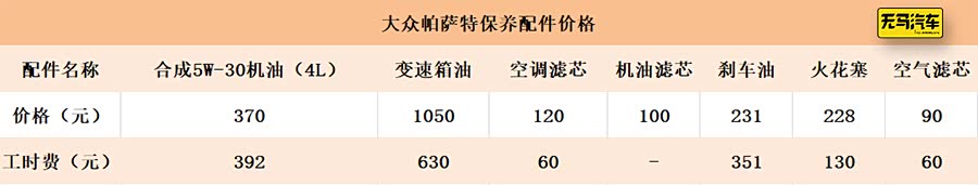 以上是帕萨特后期保养配件的价格以及工时费用,总体来看虽然是德系品牌,配件的价格除了变速箱油以外都还算比较合理,但是工时的费用会贵一些,这就导致了最终的保养价格不会低到哪里去。