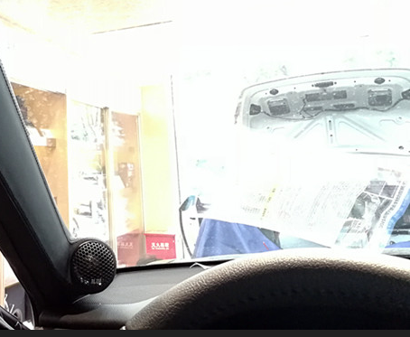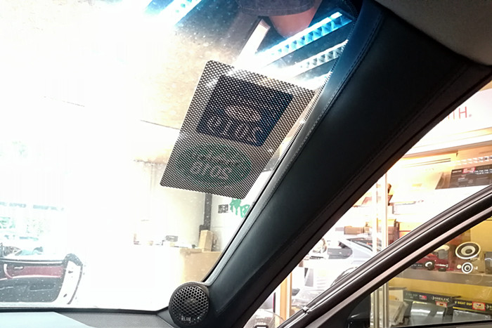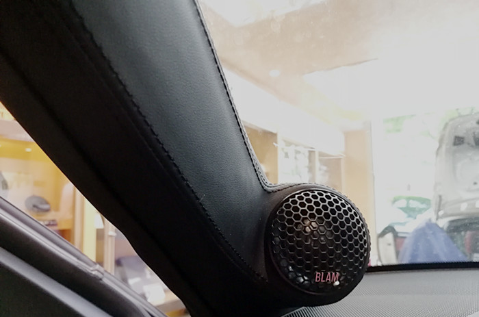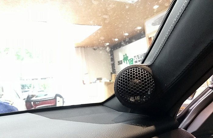 根据车主要求,前声场法国BLAM 高音单元进行A柱倒模安装;