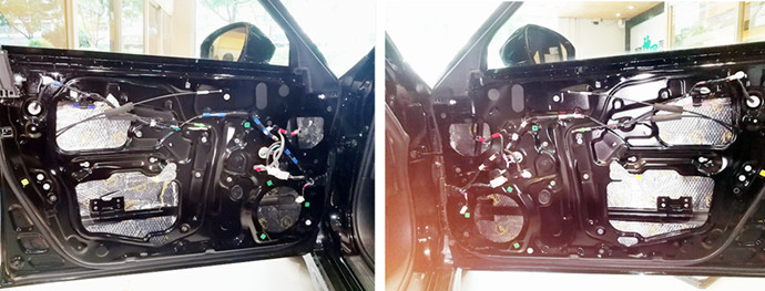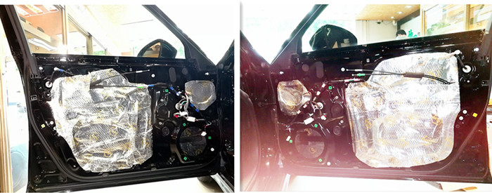 车门作为喇叭的载体,想要有不错的音响效果,隔音是必可少。原车单薄的门板不但无法抵挡风噪的入侵,更加不能抑制车门的振动;