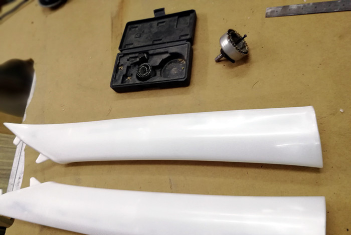 将法国BLAM高音单元安放在拉皮完成的A柱上效果,大小刚刚好,非常完美~