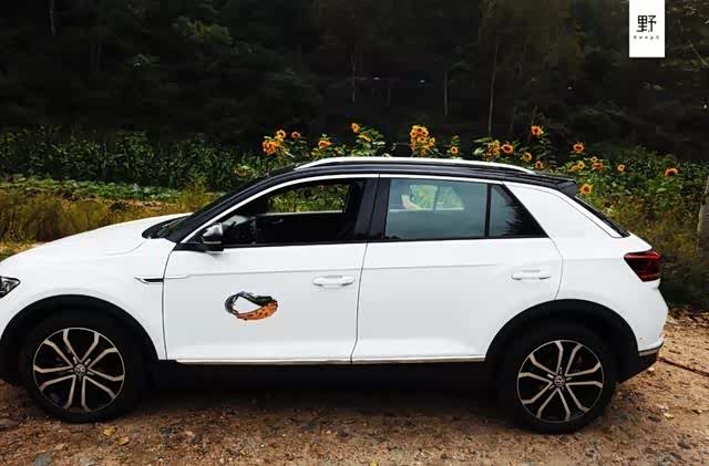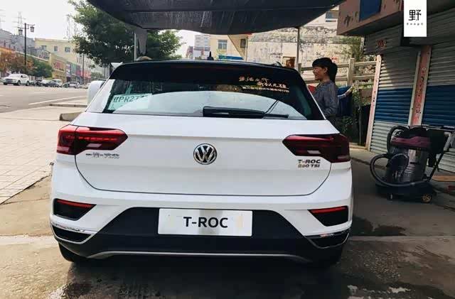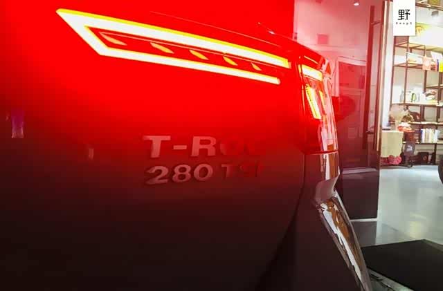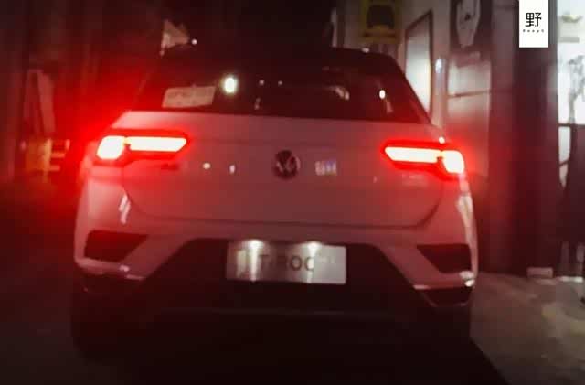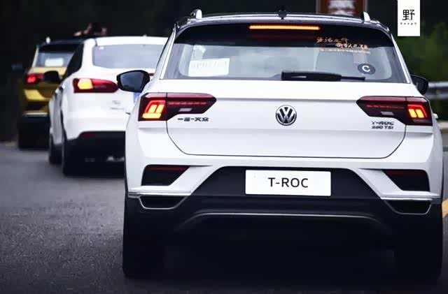 这次的座驾是大众首款SUV——T-Roc,中文叫“探歌”,寓意探索未知,且行且歌。瞧这小屁股,尾灯亮起来非常骚气。既然是且行且歌,那就音乐嗨起来。