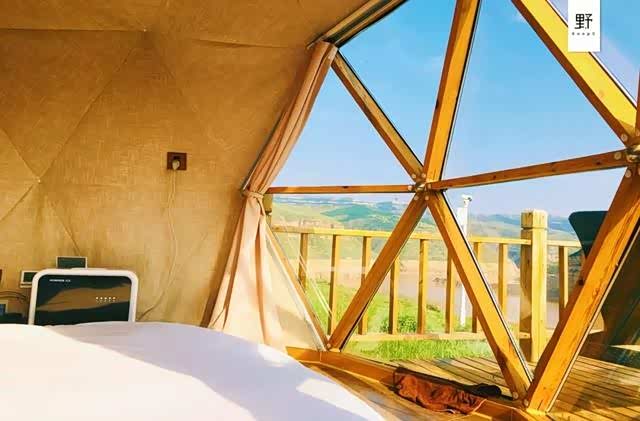 晚上吃完饭,入住老牛湾黄河边的星空酒店。这个地方刚建成没多久,是个好去处,很多人其实都不知道。老牛湾星空酒店,就在黄河之畔的山坡上,星球状的房间,有巨大的落地玻璃窗,空调,无线网络,一应俱全,另配置独立卫生,夜晚可以躺床上遥望星空,也可以在露台躺椅上小酌一杯。星空酒店限量10套,由木栈道连接,依山而建,顺势而为,还配备两个独立茶餐厅,提供茶饮早点。