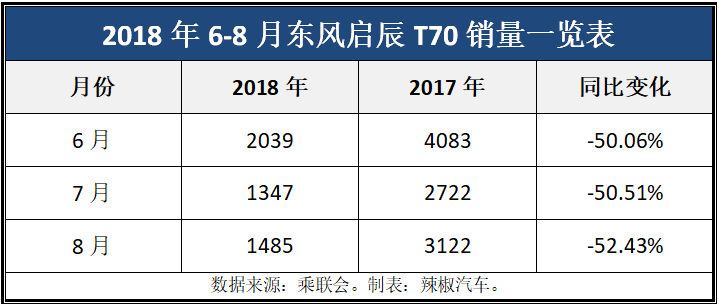 全国乘用车联合会近三个月的统计数据显示,东风启辰紧凑型SUV T70 在6-8月的销量同比分别暴跌了50.06%、50.51%和52.43%。中型SUV T90 在6-8月的销量同比分别暴跌了57.97%、62.76%和56.59%。两款车的月销量,也开始掉入一千和两千区间。虽然今年夏季整个车市遇冷,SUV市场更是出现了负增长,但东风启辰的两款SUV遭遇腰斩,则显示出消费者对它们的认可度,下降的更快。