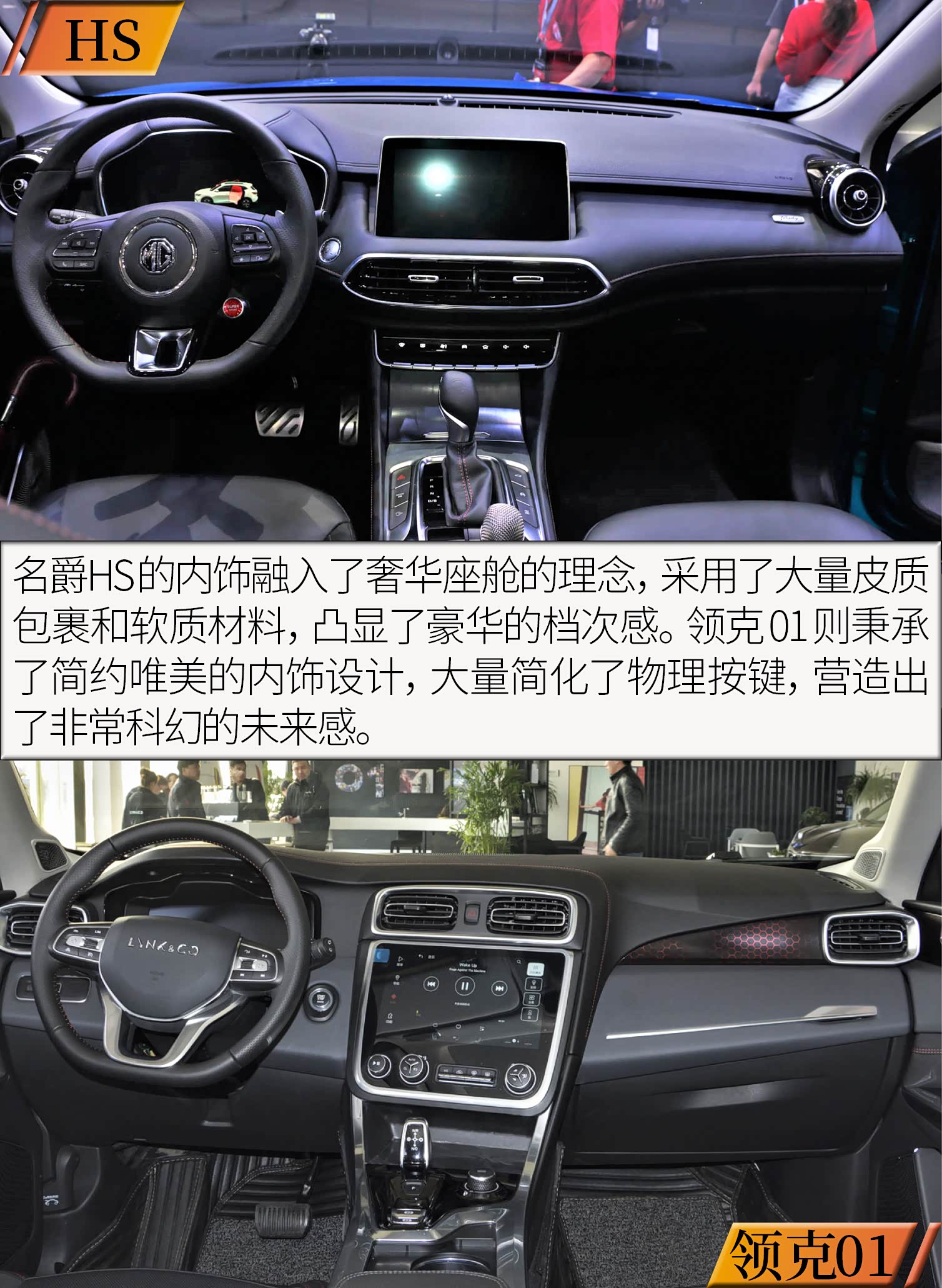通过上述对比我们可以看到,名爵HS和领克01都是非常具有产品竞争力的车型,在设计、做工、用料上都表现出了一流的水平,完全不输于合资品牌。而在外观造型上,名爵HS整体呈现出了时尚且性感的视觉效果,而领克01则体现了前卫、个性、活泼等特点,让人过目不忘。内饰方面,两款车型相同的是都具有很高档的质感,不同的是名爵HS的设计更为凌厉运动,而领克01简约科技充满未来气息。最后说到动力总成,名爵HS提供的1.5T和2.0T发动机,使其选择性更为丰富。与此同时,名爵HS的2.0T发动机相比领克01的2.0T发动机动力更加强劲。看到这里两款车型所展现出来的性格特点就非常鲜明了,如果你是注重运动感的消费者,名爵HS看起来更加适合你,而要是你是一位个性十足,想要赢得更多回头率的消费者,那么领克01是一个不错的选择。(文/车友头条 张祁有)