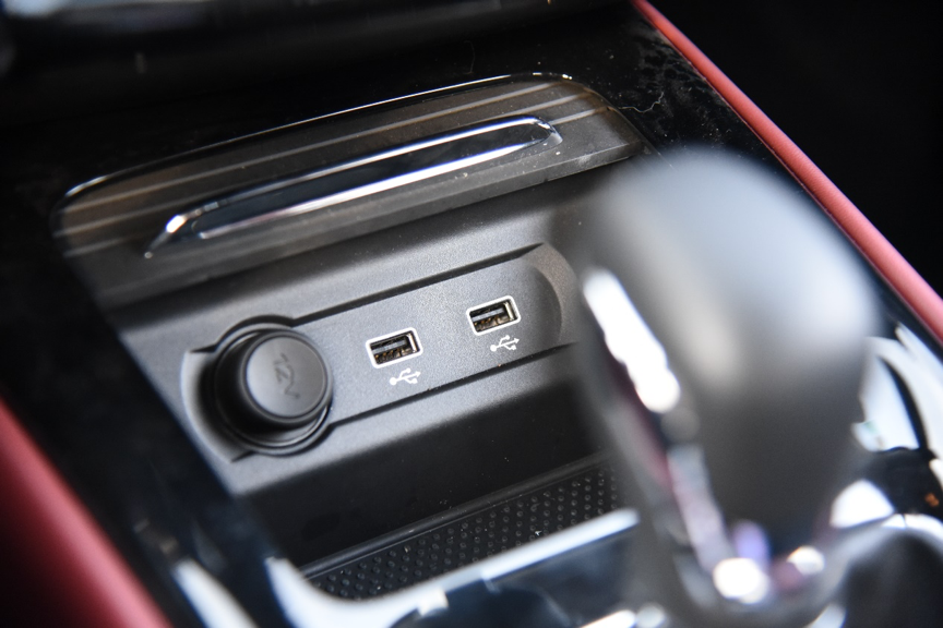 中控屏转变为横向设计后,底部出现了一个不小的储物空间,i5还在这里提供了双USB电源与一个12V点烟器接口。针对消费者普遍会安装行车记录仪的现状,荣威的工程师在内后视镜右侧留下一个USB接口便于后期取电,省去了从A柱隐藏绕线到中控台的烦恼。