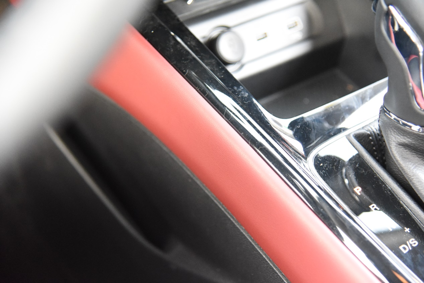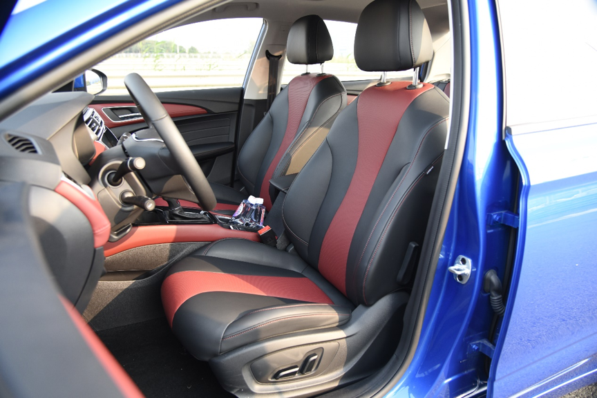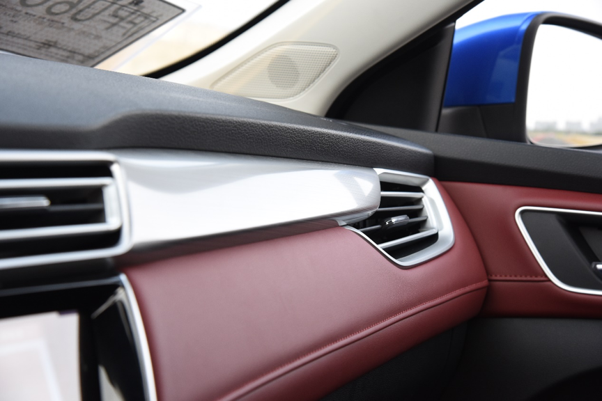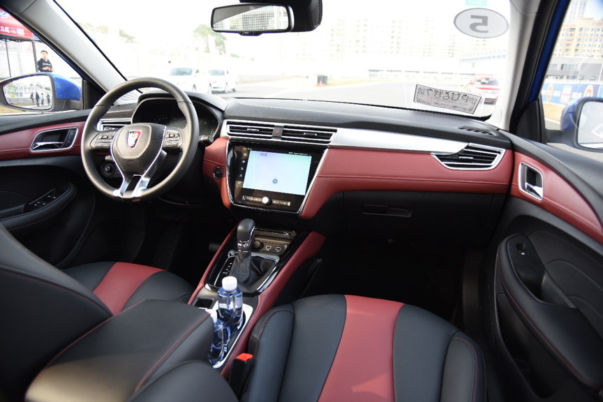 进入车内,荣威i5提供了和i6相同的红黑撞色内饰,横向化设计的中控台对前排空间侵占极小,多重配色的错落使用,又从视觉上带来了更强层次。新车在车内没有吝啬软质材料的应用,中控台和门板处都有大块的皮革覆盖,挡把所在的地台边缘也使用了内置填充物的皮革包裹,为腿部舒适性做出保障。