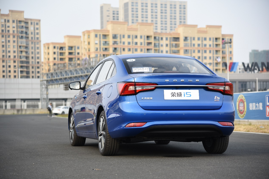 荣威i5的尾部设计比较简洁,视觉重心集中在牌照框附近,但也不乏一些亮点设计。比如,i5的后备箱末端向上翘起形成了一个小鸭尾,两个灯组间衔着一条镀铬装饰,使用ROEWE英文标识替代了LOGO等。