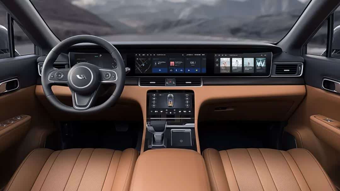 第二个特别之处是,中控台嵌入了四块大尺寸屏幕,分别为全液晶仪表和两块多媒体显示屏和车辆控制屏。屏幕可视化、智能语音识别系统和车载系统OTA无线升级功能将带来不一样未来驾乘体验。