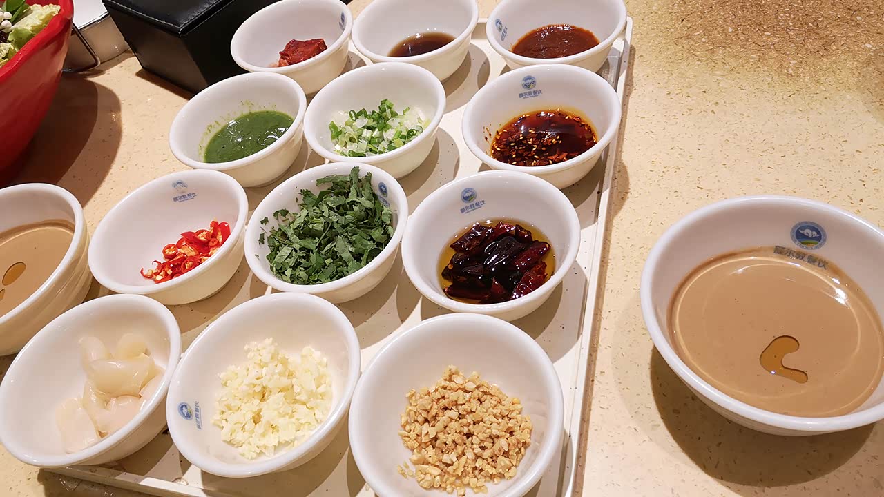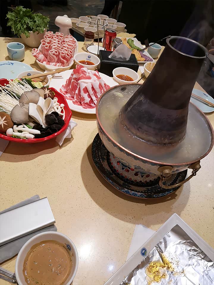 这家店的羊肉久涮不老,也不碎,也没有膻味,特别纯正特别好。调料也特别有仪式感,满满一桌子。大家吃得很开心,