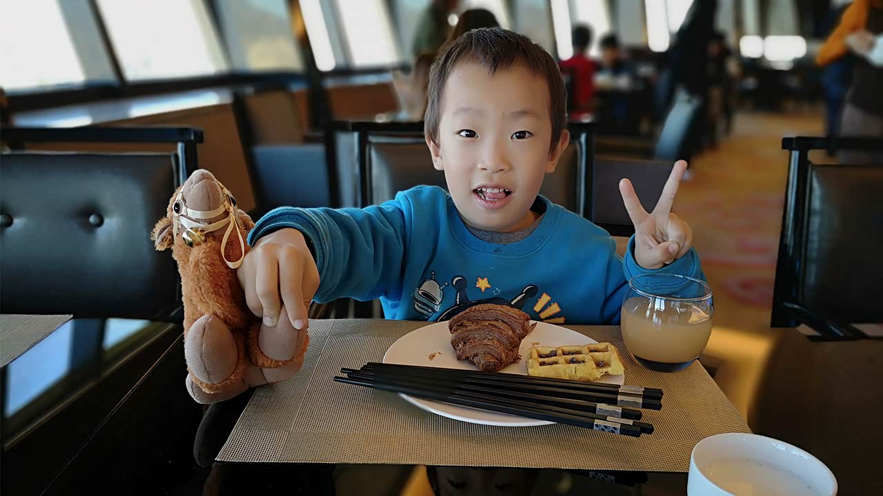 吃饱喝足,去酒店办入住。我们住在巨华国际酒店,楼顶有个旋转餐厅。早餐就在那儿,早餐单卖是88元一位,但十一送早餐,所以非常划算。这个酒店一切都是五星级标准,性价比很高,推荐。