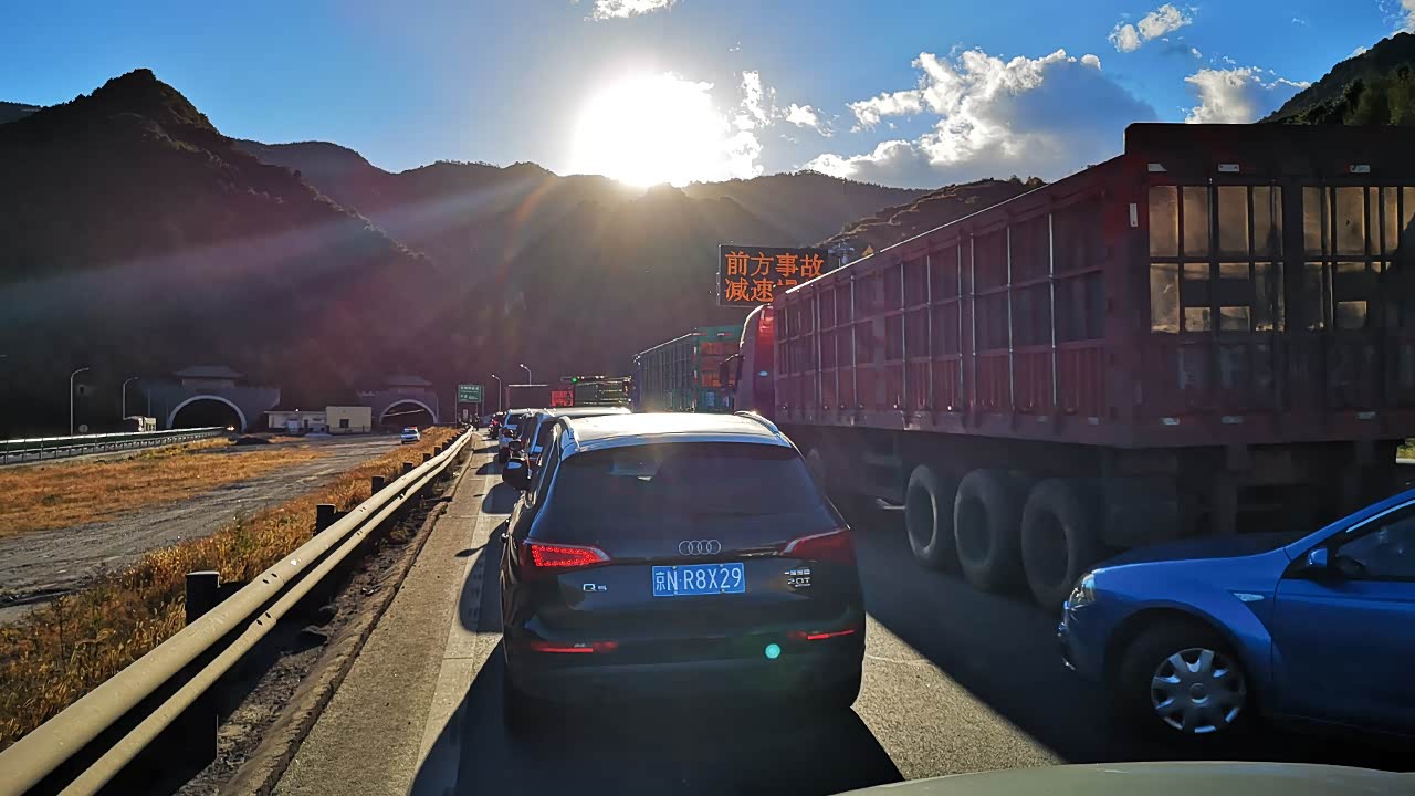 堵车将近五十分钟的时候,从应急车道来了俩小车从大车那儿往前面加塞。这种情况我不得不吐槽一句,已经堵成这样了,这个时候加塞真的是有点不要脸,你要是真着急,你开到隧道里一块救火去得了。就在这俩小车加塞过来十几分钟时,路通了。总共耽误了一个小时四十分钟左右。有人会问我让没让这俩车,我让了一个,挤住一个😁哈哈。