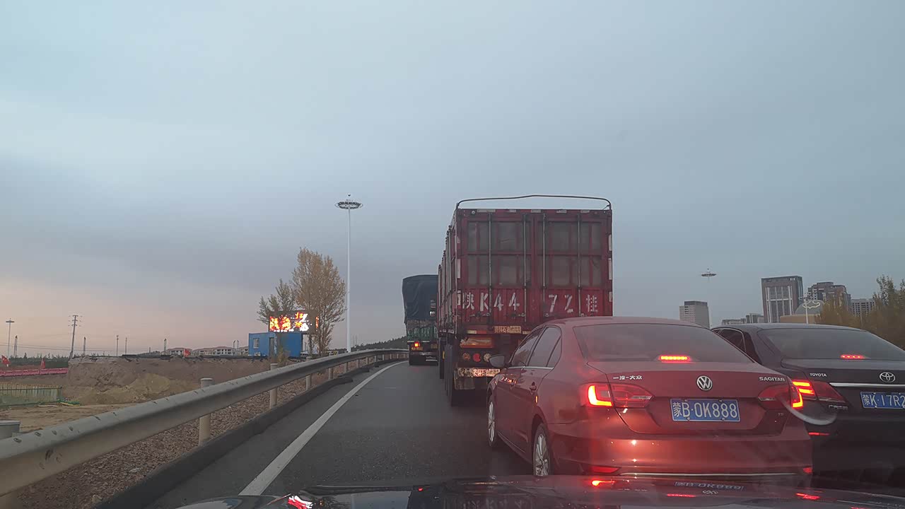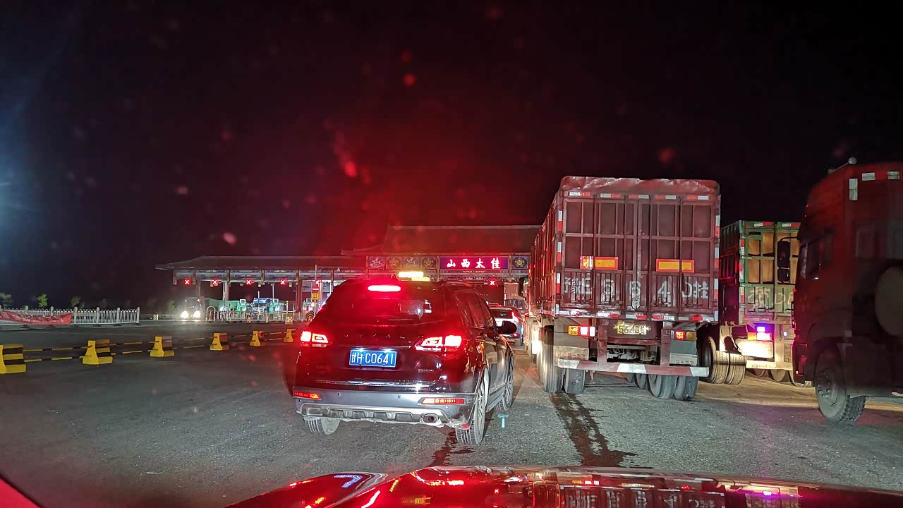 夜间进入 山西 太佳收费站之前,遇到了本次行程中的第一次小惊险,这也显示出这块高速公路收费站设置的不合理之处。因为还有几个小时就到小客车免费时段了,所有小客车 通道 都被封住了,大货车和小客车只能从两条 通道 通过,明显是人为制造的拥堵。在行驶过程中,总会有不规矩的车从左右两边开到收费站之前往 里加 ,不知道这些人是不是上厕所也不排队去加塞,一看就没被打过。我跑题了。就在我马上进入收费 通道 的时候,左边的卡车突然 大方 向往 里加 ,我按住喇叭,停车。卡车在我车头一拳的位置停住了。