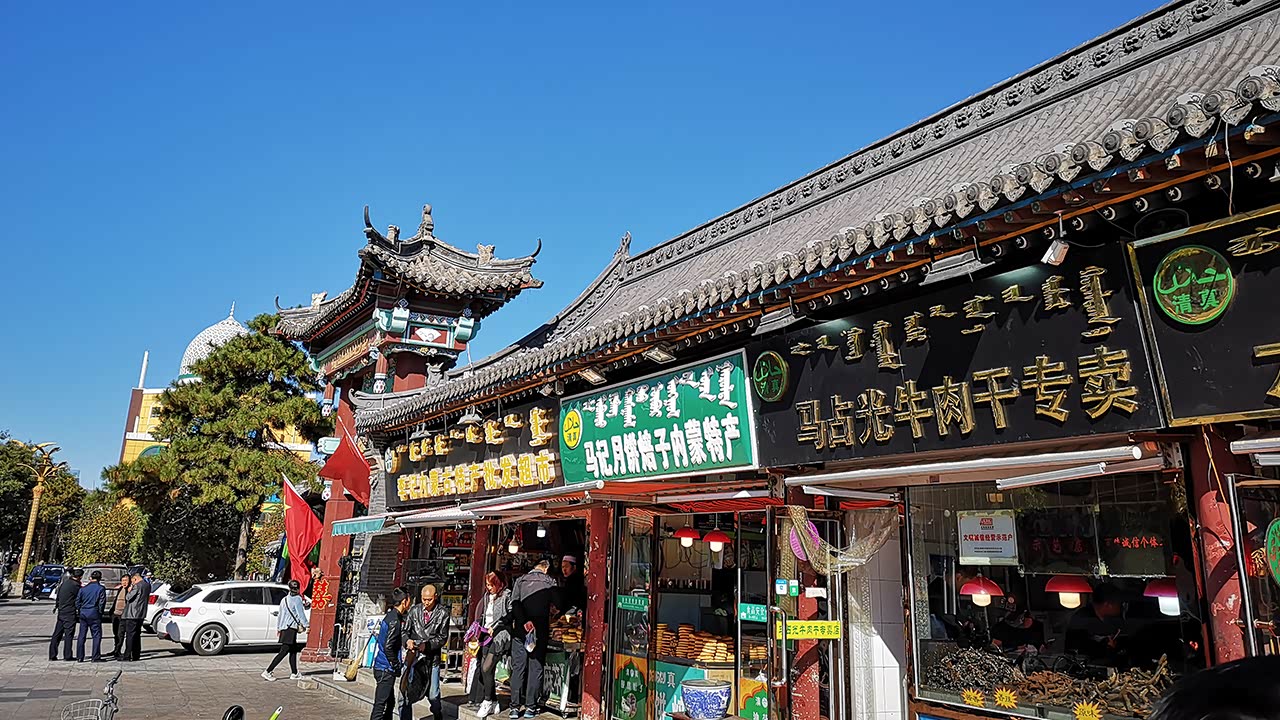 我们买了一些奶制品,个人建议先尝后买,因为每家的味道确实有区别。之后,前往回民区,去回民风情街看了看,中途路过清真大寺,如果有兴趣的也可以去参观一下。后面有条街,有个熏鸡不错,分肉鸡和柴鸡,看个人喜好了。还有一家店,卖炸鸡腿,现做的,味道超赞。