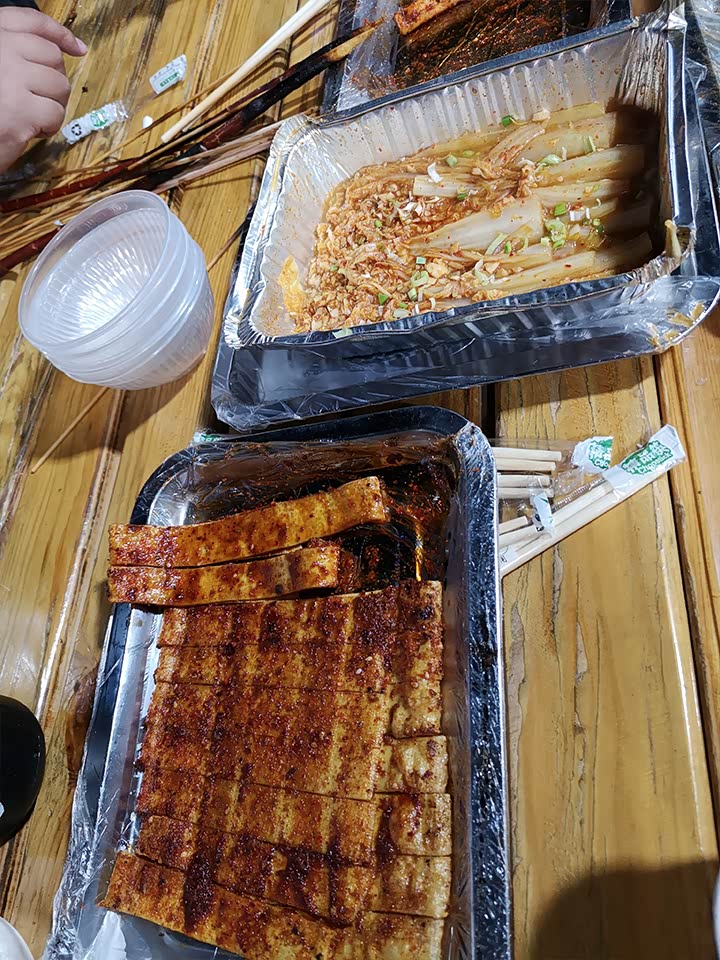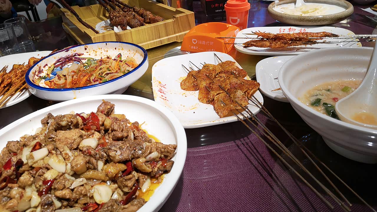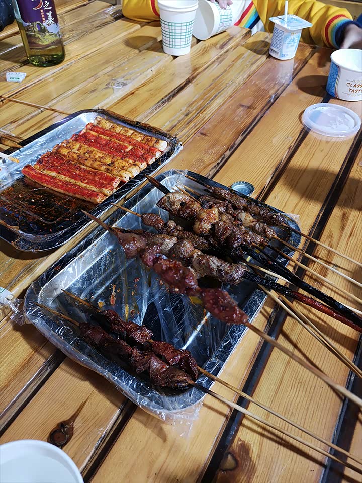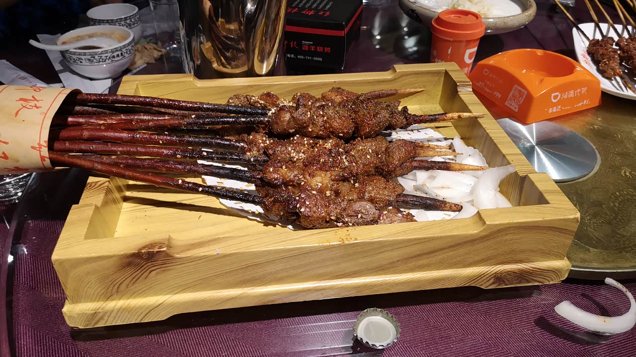 看完景点,到了振奋人心的吃饭时间了,我的自驾游路上基本都吃零食,按我老婆的话说“跟军训似的”。点评精挑细选,找到一家红柳烤串,果然名不虚传,强烈推荐。