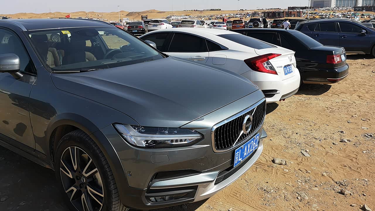 下了高速跟导航又是一路向西,路况也是越来越好,没多久就能看到 阿拉善 英雄会的标识。一直往里开,跟着车流和路标就到了。停车场车位充足,停好车就可以溜达进去了。提前报名的,车子还能再往里开,我们临时决定的,车就要停远一点了。