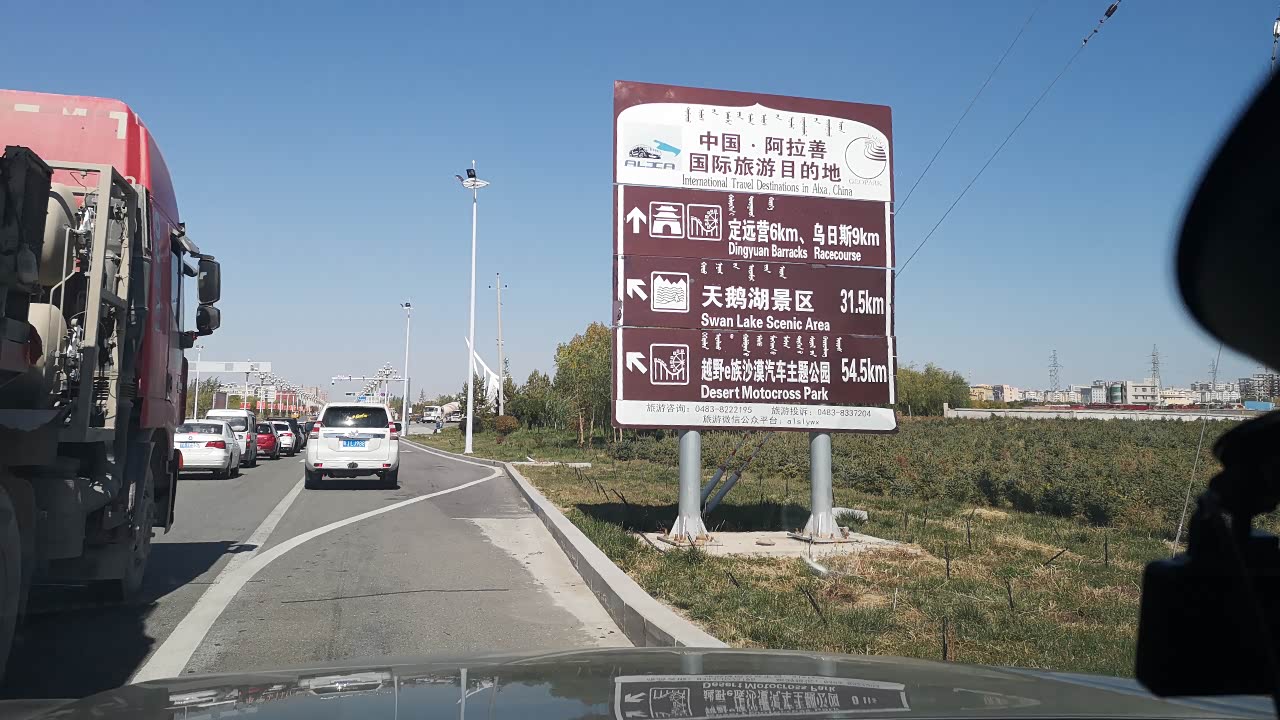 休息好了继续前行,快到 阿拉善左旗 的高速口的地方堵车堵到怀疑人生,几乎高速路上所有的车都从这里下高速。